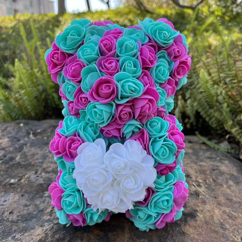 - Design Innovant : Un ourson charmant avec un cœur bicolore, représentant l’union de deux cœurs.